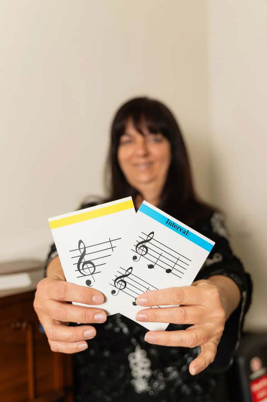 Dr.Olena teaching music theory combination with solfege.
